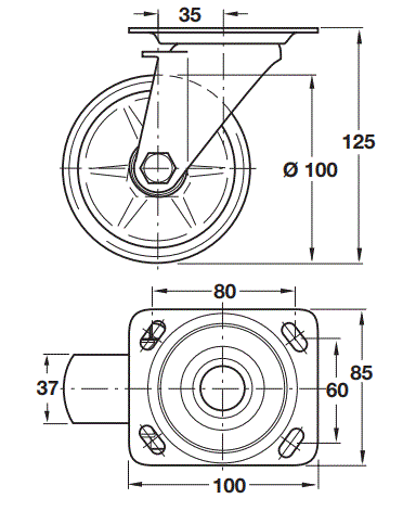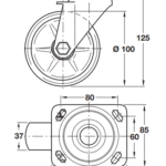 Swivel castor, 125 kg. Swivel castor