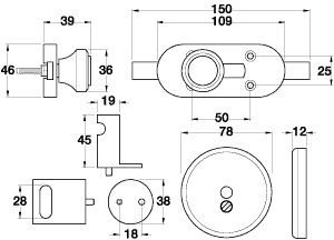 Includes all fixings for 17 – 21 mm board thickness including 2 rubber buffers