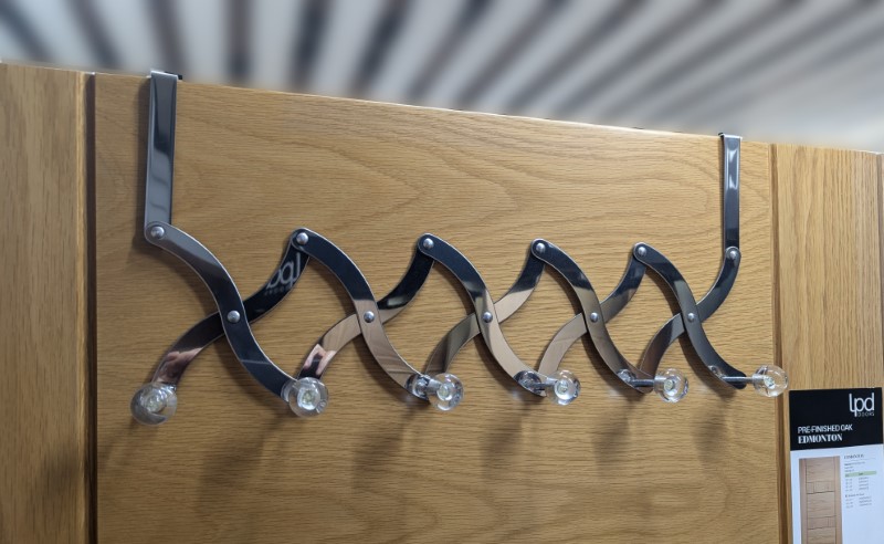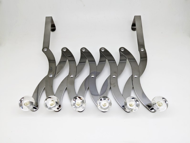 Concertina over-door clothes hanger. 6 hooks. Variable width.