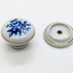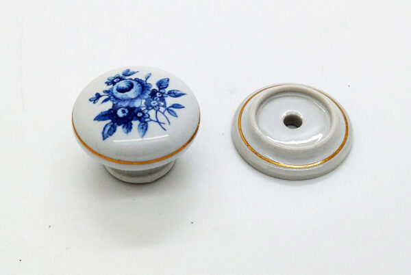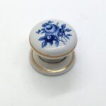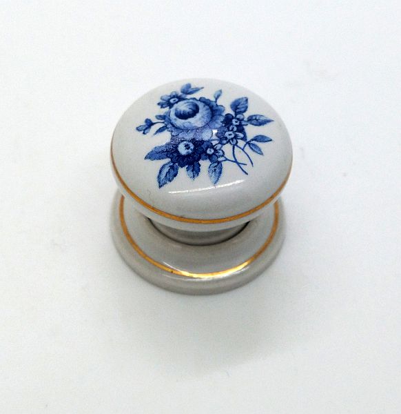Porcelain cupboard knob in Blue Bouquet and White. Approximately 32mm diameter, 30mm high (with rose), 23mm high (without rose). Can be used with or without the rose.