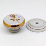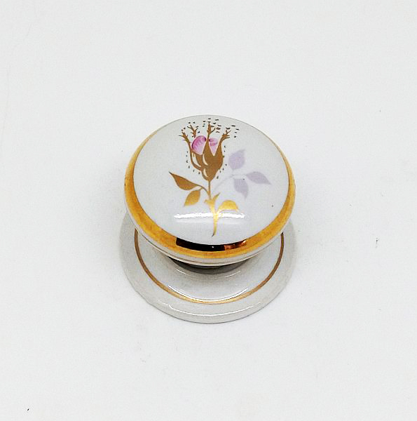 Porcelain wardrobe knob in Chintz Rose and White. Approximately 38mm diameter, 32mm high (with rose), 26mm high (without rose). Can be used with or without the rose.
