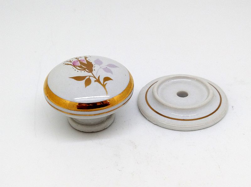 Porcelain wardrobe knob in Chintz Rose and White. Approximately 38mm diameter, 32mm high (with rose), 26mm high (without rose). Can be used with or without the rose.