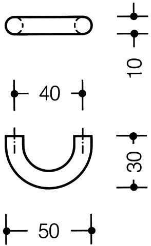HEWI nylon cabinet furniture handle, 10mm diameter, to be installed from the inside with wood screws (not supplied) fixing points 40mm centre to centre.