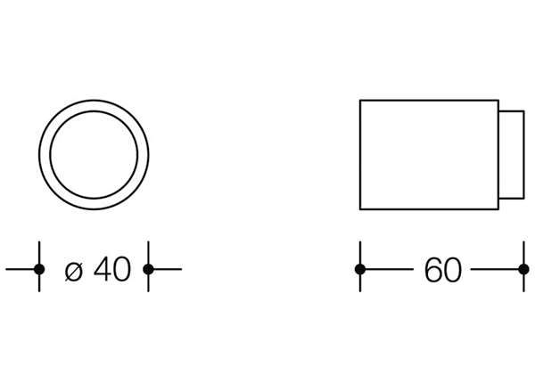 HEWI door stop nylon, wall mounted, with spring loaded black elastollan buffer, 40mm diameter, projection 60mm.