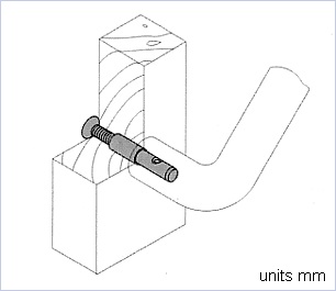 Fixing boly thru (550 type pin type). HEWI type BA3.1 for through fixing of handle to solid wood, plastic and 2 to 3 chamber aluminium profiles. Drill hole in door = 13mm diameter, dimension L= 50mm, door thickness 40-50mm.