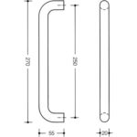 HEWI nylon pull handle 20mm diameter fixing points 250mm centre to centre. Fixings not included – use 5.0mm wood screws