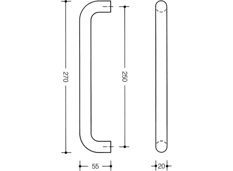 HEWI nylon pull handle 20mm diameter fixing points 250mm centre to centre. Fixings not included – use 5.0mm wood screws