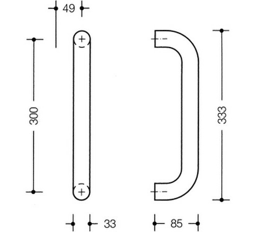 Diameter 33 mm, for one-sided and paired (double-sided) fixing for one-sided and paired fixing on glass, wooden, PVC and metal doors (aluminium: 1 to 3 chamber, steel: 1 chamber profiles),