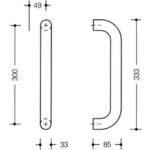Straight handle in a curved shape, with straight supports, for mounting on leaf doors, in conjunction with BA5.0 for frame doors.
