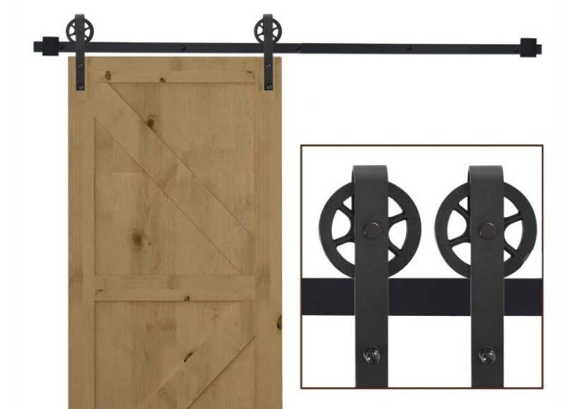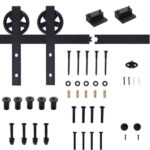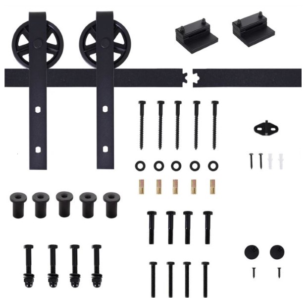 HOMCOM 6.6 FT/ 2000mm Carbon Steel Sliding Barn Door Kits Hardware Closet Set Track System for Single Wooden Door Industrial Wheel Style Roller