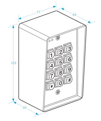 Standalone backlit digital keypad, 12/24VDC in aluminium housing. Allows 20+ pin codes, programmable via keypad with master pin. dual relays outputs. weather and vandal resitant, LED status indicators: red, yellow & green plus audible beep. invalid pin lockout for 60 secs after 30 incorrect attempts.