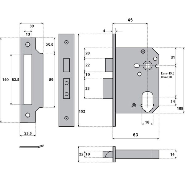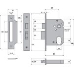Suitable for both Euro and Oval profile cylinders. Latchbolt operated by lever handle from both sides. Deadbolt operated by cylinder from either side. Steel, epoxy polyester powder coated case.