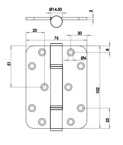 Grade 13 Radiused Self Lubricating Hinges 102x76x3mm Polished Stainless Steel