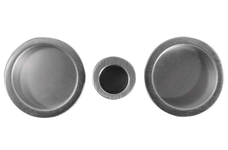 Edge and face flush pull set. Suitable for sliding/pocket doors. Inclued 1x edge and 2x face pulls. Satin chrome finish.