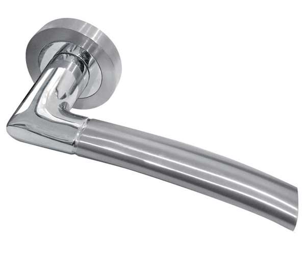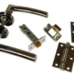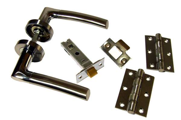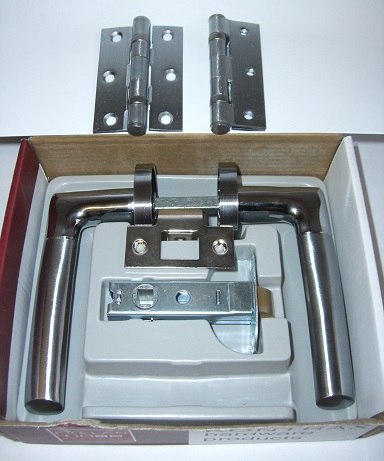 Complete boxed door pack, includes Lorenzo lever on rose set (2-tone polished and satin chrome), 1 pair of 3x2in ball bearing hinges (satin chrome) and a 3in tubular latch (satin chrome)