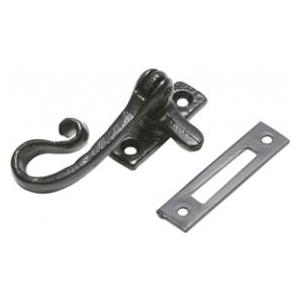 Reversible black iron casement fastener with hook plate