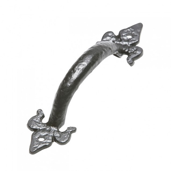 Malleable iron face fixed pull handle. Fleur-de-lys pattern.