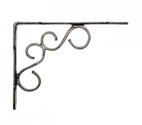 Scroll shelf bracket in Antique Black.