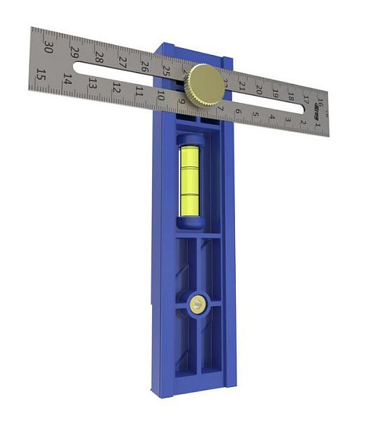 The Multi-Mark Trademark is a universal measuring and setting out tool, simple in design and very accurate. It will soon become a valuable part of your toolkit. The metal rule can be set in 3 ways and is locked in place with a thumb wheel. Use it as a T-square, adjustable bevel or a depth stop, a torpedo level is incorporated into the durable body for checking and setting levels. To sum up: