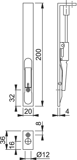 A lever action door bolt used mainly on pairs of doors to secure the first closing leaf to enable the second leaf to be locked securely.