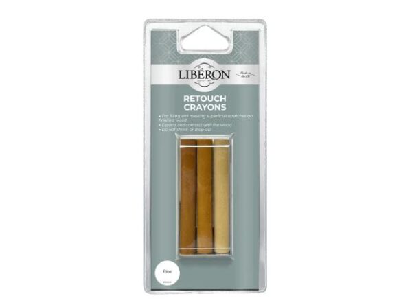 Liberon Retouch Crayons can be used to fill scratches, nail holes, worm holes etc. in furniture and other woodwork.