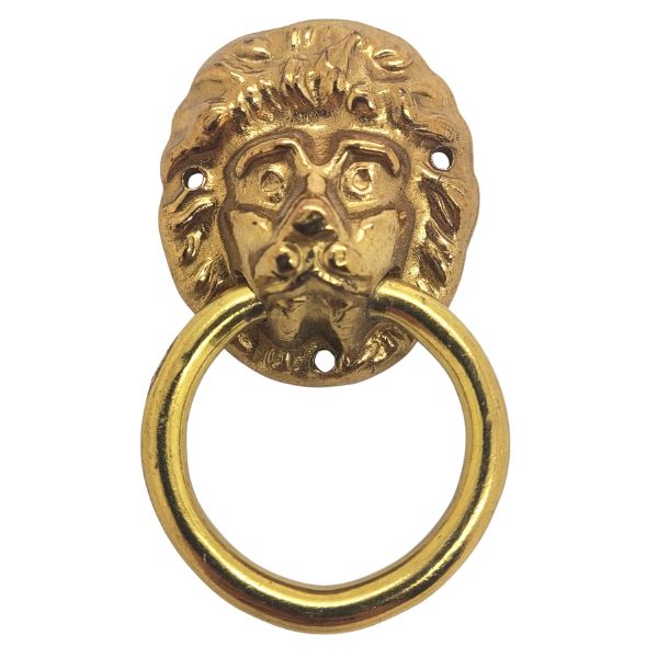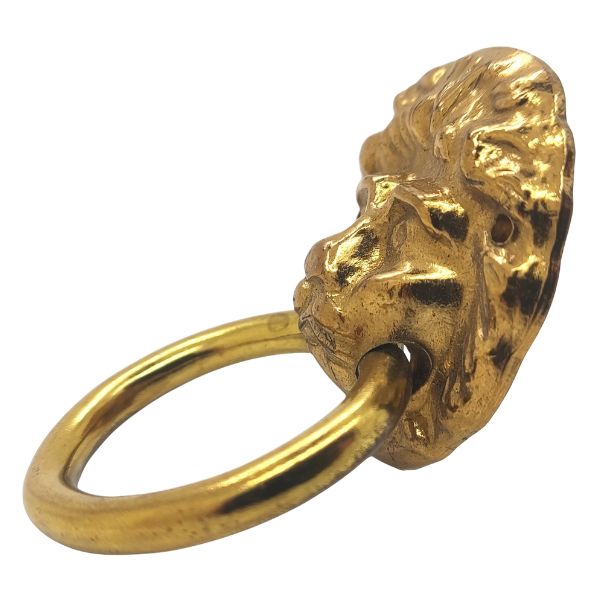 Add an element of extravagance to your cabinetry with this Lions head, polished brass, ring, cabinet handle.