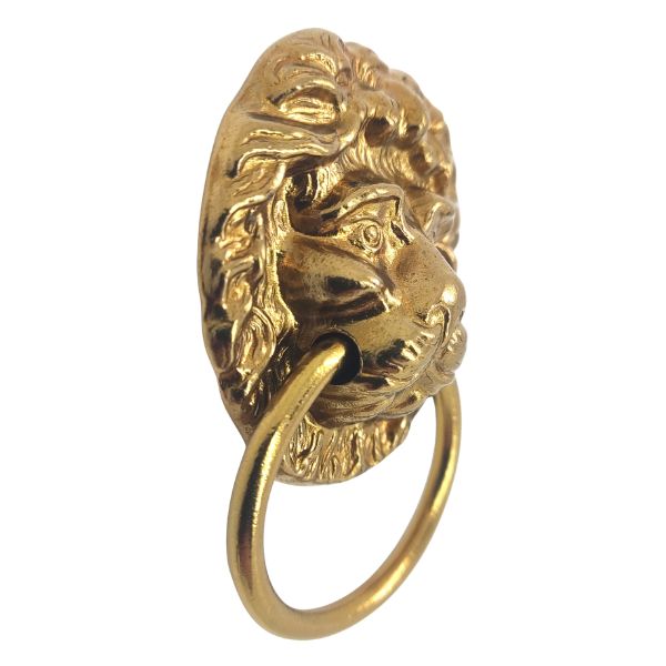 Add an element of extravagance to your cabinetry with this Lions head, polished brass, ring, cabinet handle.