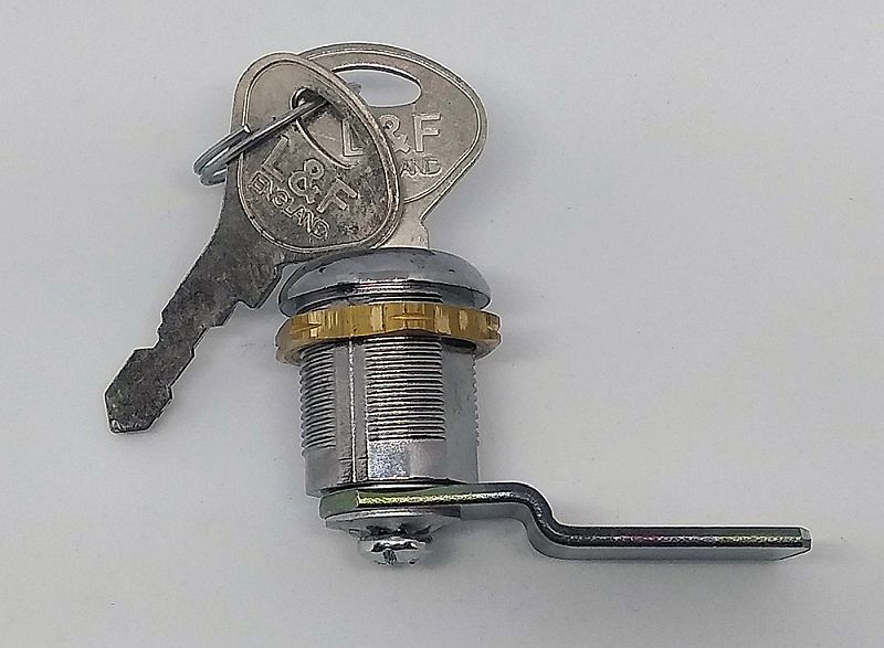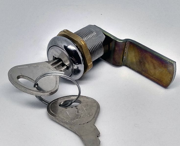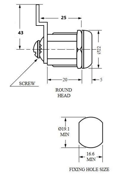 Nut fixed camlock. 20mm body length. 1/4 turn clockwise. 43X5mm Cranked cam. Supplied with 2 keys.