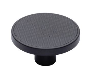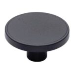 Zinc alloy cabinet knob with matt black finish. 50mm diameter.