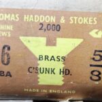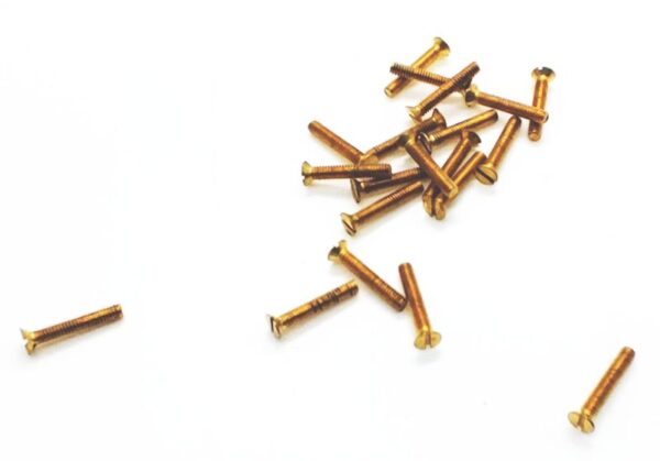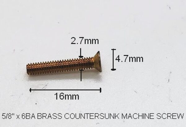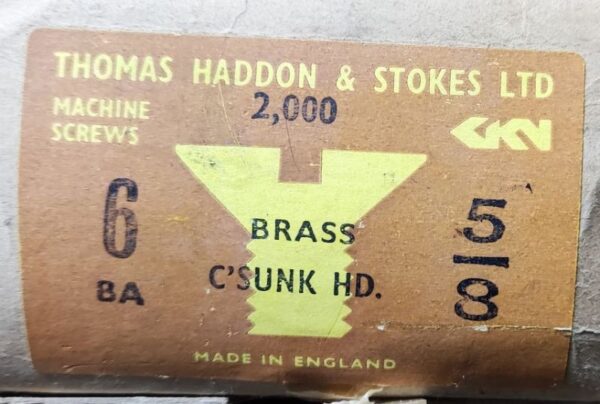 Countersunk brass slotted machine screw 6BAx5/8in brass. Original british manufacture. New and unused – just old stock.