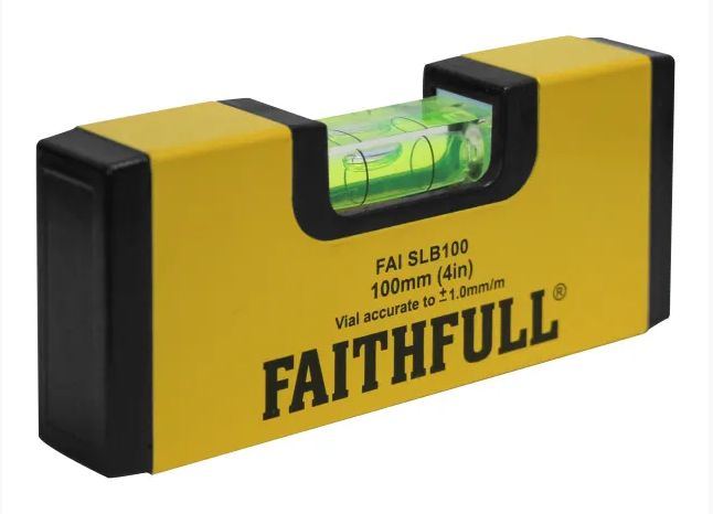 The Faithfull Magnetic Mini Level is manufactured from aluminium extrusion with a resilient powder-coated finish. Shockproof end caps protect the level if dropped. A flush-mounted magnet in the base permits hands-free measuring on steel surfaces. This compact, pocket-sized level, for making accurate horizontal surfaces, is fitted with a solid acrylic vial, accurate to +/- 1.0mm/m.