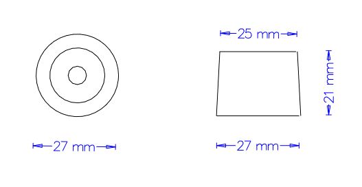 Door stop 27mm. Black rubber. Screw fixing (not supplied). Wall or floor mounted.