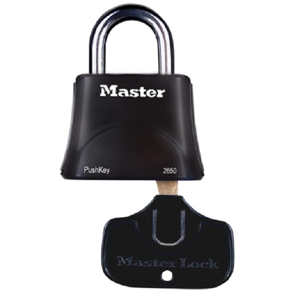 The Master Lock PushKey Accessibility Easy Use Padlock requires no twisting of the wrist to operate the lock. Easy to use and requires very little force to open.