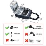 The Master Lock 5400E Key Lock Box can easily hold up to 3 keys (house or car) in a convenient location for regular use or can be portable. Lock in place over the door knob or handle for convenience. Set-your-own 4-digit tumbler combination for convenience and quick access.