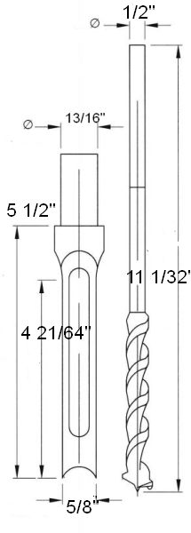 These hollow square mortise chisels and bits are suitable for use on most mortising machines. Cutting depth 50mm.
