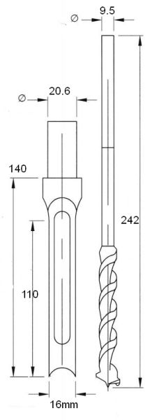 These hollow square mortise chisels and bits are suitable for use on most mortising machines. Cutting depth 50mm.