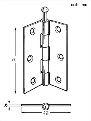 75mm x 49mm Standard 1840 Pattern Loose Pin Butt Hinge.