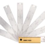 The measuring scale is deeply etched on a stainless ruler and folds into a gold colored aluminum base.