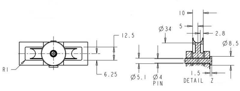 Screw Fixed Cast Single Pulley. 44mm Nylon Wheel