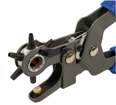 Revolving carbon steel head and spring-loaded handle. Includes 2, 2.5, 3, 3.5, 4 and 4.5mm punches. Plastic moulded handles with slip guards.