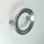 Retro drawer pull in Satin Chrome finish. 57mm diameter. 21mm projection. 48mm screw centres.