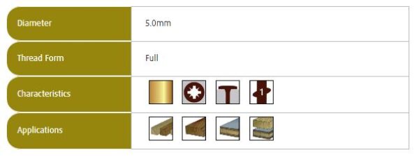 Box of 200 Reisser R2 pan head woodscrews 5.0x25mm. Yellow tropicalised. The same tried and tested design as all the R2 screws to give consistent performance in all timbers and board materials. The design of our Pan Head gives the extra pull through performance and clamping power required of a Pan Head, especially when fixing brackets or plates etc to timber but still allows for a good deep bit recess, helping to reduce cam-out. The 25deg needle point gives the ability to penetrate almost all timbers without a pilot hole and the sharp, wide deep thread with unique lubrication gives up to 40% less driving resistance and easy penetration. The Yellow Tropicalized coating gives superior corrosion resistance (compared to a standard BZP coating). Specially hardened steel gives the R2 PAN HEAD maximum tensile and torsional strength and the R2 thread pattern offers exceptionally high pull out resistance.