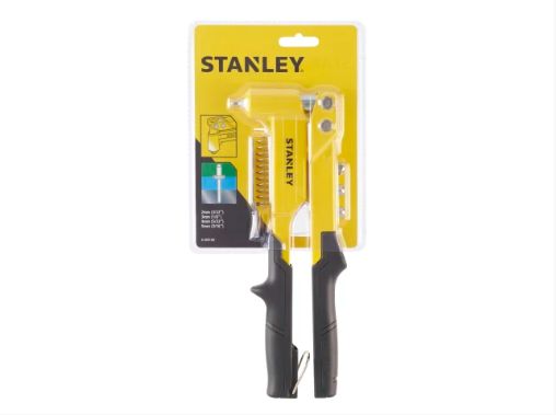 This Stanley MR100 contract grade, heavy-duty, long-lasting all-steel riveter is supplied with 4 nosepieces and a wrench store in the handle for versatility and convenient storage.