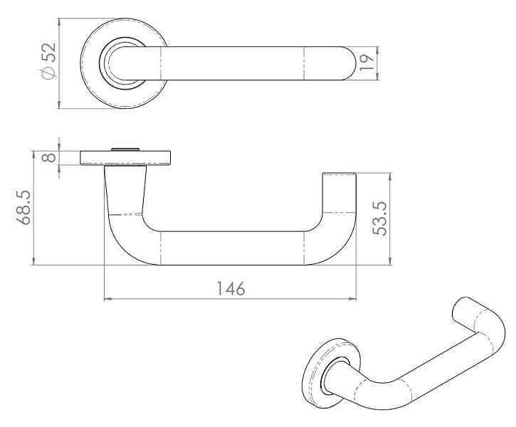 Safety Lever 19mm On Sprung Rose Satin Anodised Aluminium