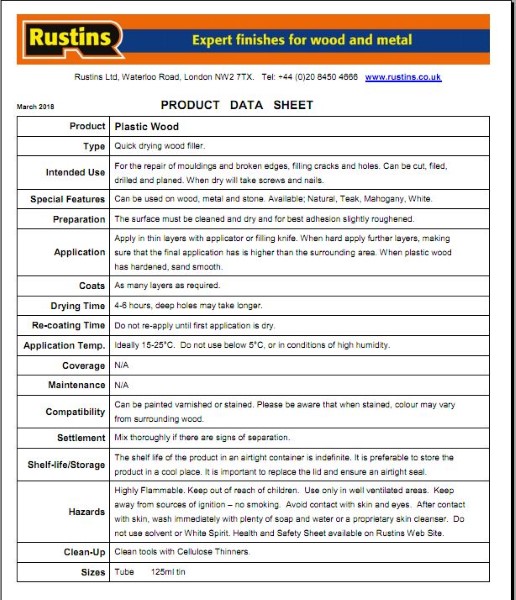 A quick drying filler available in Natural. It is waterproof and suitable for interior and exterior applicationd and is excellent for use on edges. When it is dry it will take screws and nails. Size: 20g Tube in Natural.