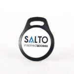 Salto Keyfob. NXP MIFARE DESFire 2K. Black fob for use with Salto SPACE. Programmable as User or Guest fob allowing 2 way data transfer. Will transport blacklisted User details and audit trails. Re-programmable. Extremely resistant & suitable for most kinds of environments. Black plastic disc suitable for keyriing attachment.