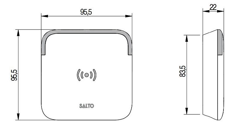 SALTO wall reader Proximity BLE DESFire Mifare. For European standard. Squared or conical shape. White.