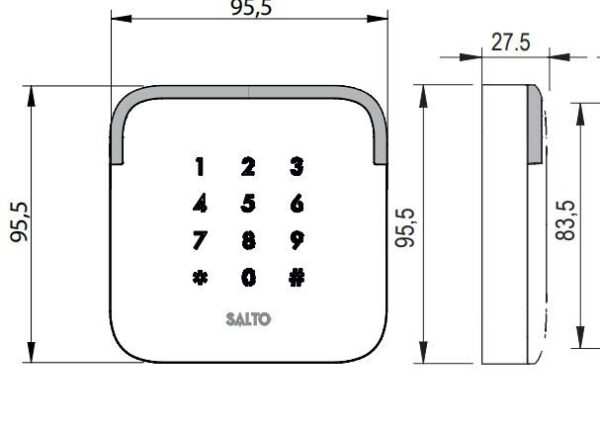 SALTO DESIGN XS Square Wall Reader in White with Keypad.