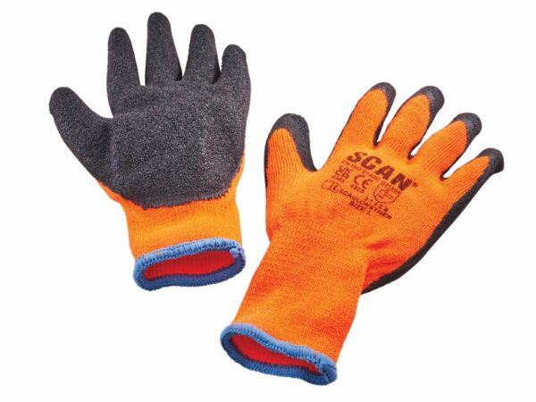 These high visibility gloves with seamless acrylic 10g brushed thermal liner have a black latex wrinkle coating and excellent grip in both wet & dry condition.