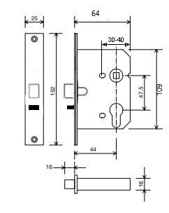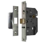 UK Manufactured Euro Profile Mortice Lockcases – 47.5mm Centres. 64mm Mortice Deadlocking Nightlatch with Hold-Back. UK Manufactured lock cases. Heavy follower spring for non-sprung furniture. Reversible latch bolt. 38mm Bolt-through fixing centres. Anti-thrust fitted to prevent latch being forced back. Hold back snib. Satin Stainless Steel striker and forend. Not suitable for fire doors (not CE marked)